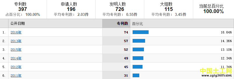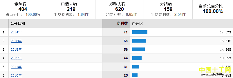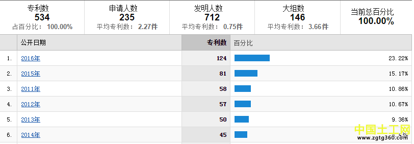 以申报专利为例,分别以“土工格栅”、“土工布”、“土工膜”为关键词进行检索,各自的数量分别为534项、404项、397项,且主要集中在近5年内。